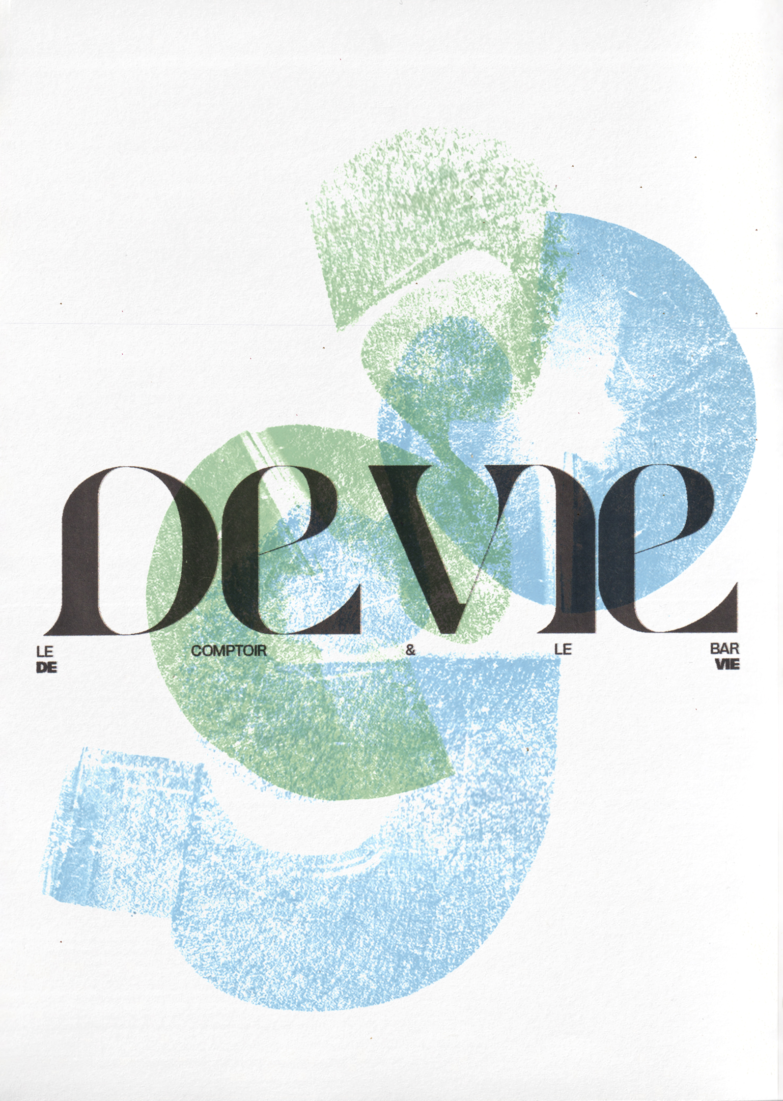 L'agencement de ces deux typographies crée une tension créative, une dualité captivante qui représente l'équilibre entre une expérience gastronomique sophistiquée et l'effervescence contemporaine de la mixologie. Les lettres se fondent et s'entrechoquent, créant une synergie visuelle qui incarne l'essence même du lieu.