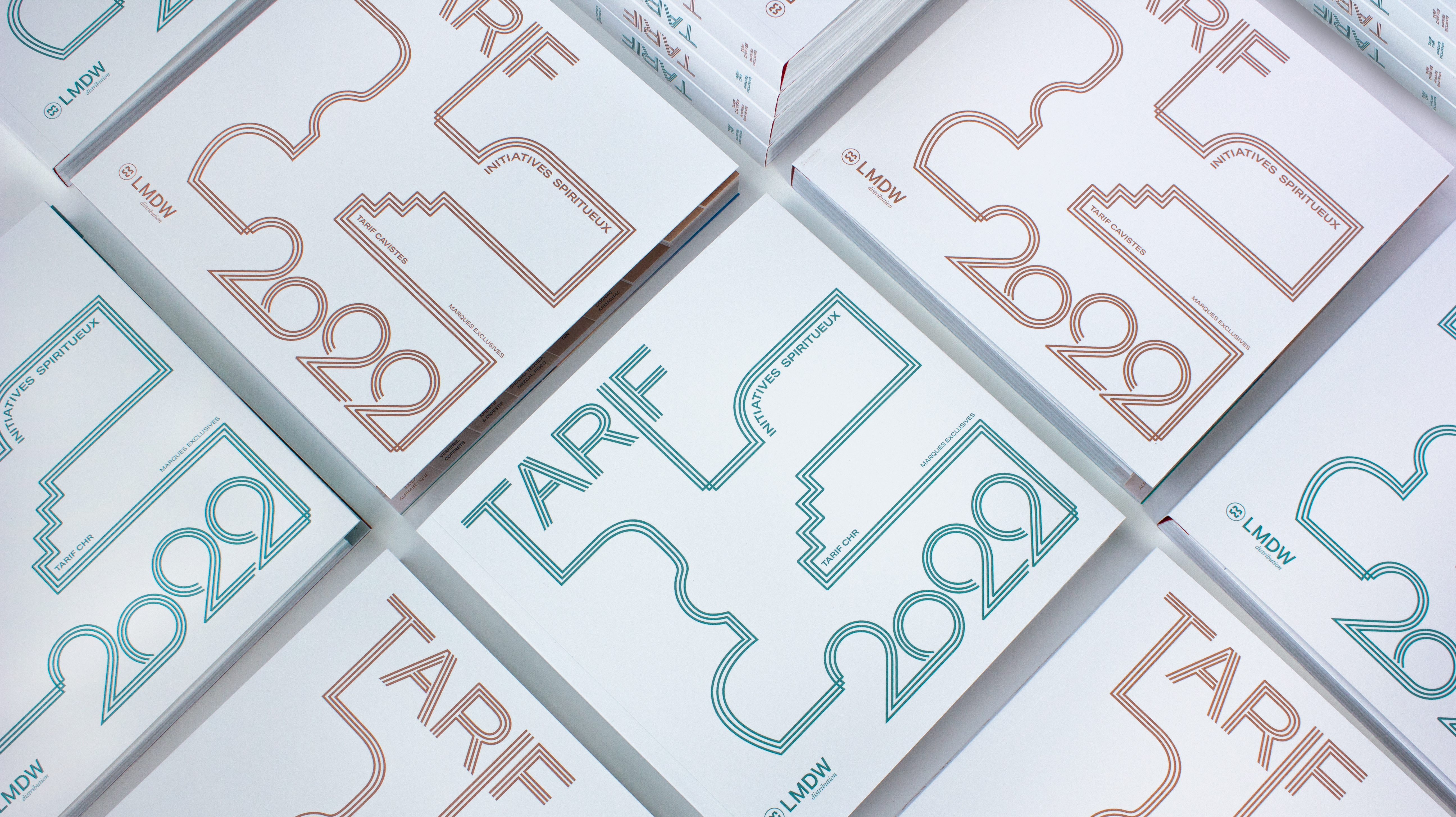 Conception de la couverture du Tarif 2022. Création d’une éco-font et d’un chemin dans l’espace représentant le circuit court d’éco Spirit. Eco Spirit est le nouveau partenariat permettra d'introduire la technologie des spiritueux en circuit fermé d'ecoSPIRITS sur l'un des marchés de spiritueux les plus importants et les plus en vue de l'Union européenne, à partir de novembre 2021.